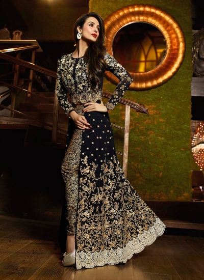 Malaika Arora Designer Suits : Malaika Arora Blue Faux Georgette Anarkali Suit | Salwar ... : A deep grey dupatta was paired with the outfit.